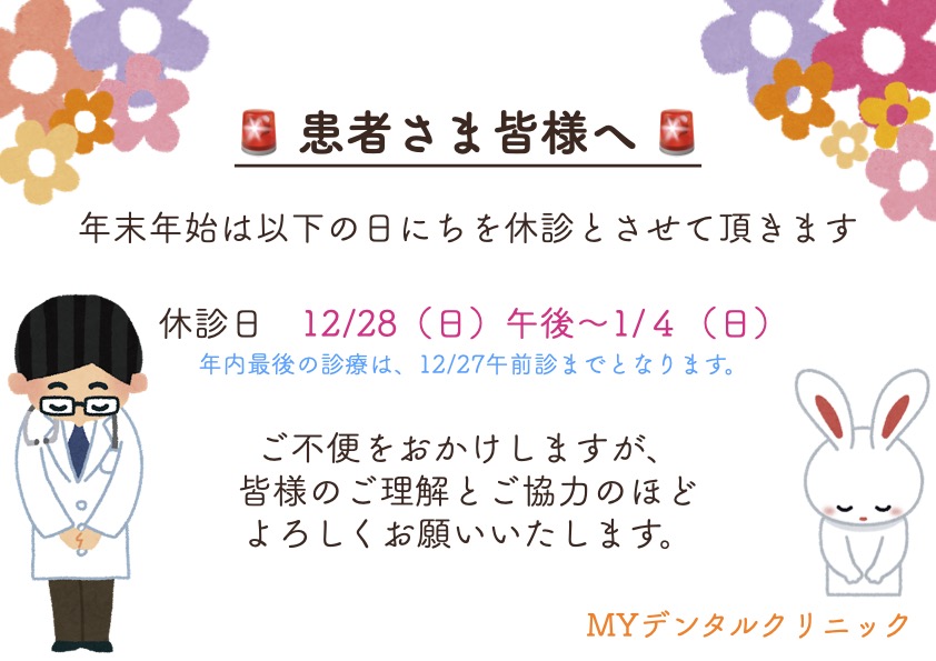 平素よりMYデンタルクリニックをご利用いただき、誠にありがとうございます。