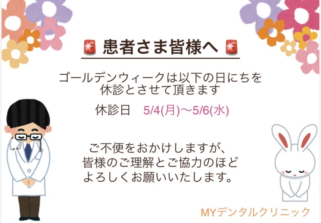 ゴールデンウィークの診療について|堺市でインプラント・歯医者をお探しなら|MYデンタルクリニック